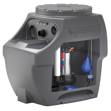 PUMPTEK SAR DRÄN är en komplett pumpstation med vortex centrifugalhjulspump för att pumpa grå- eller dagvatten från ett hushåll.